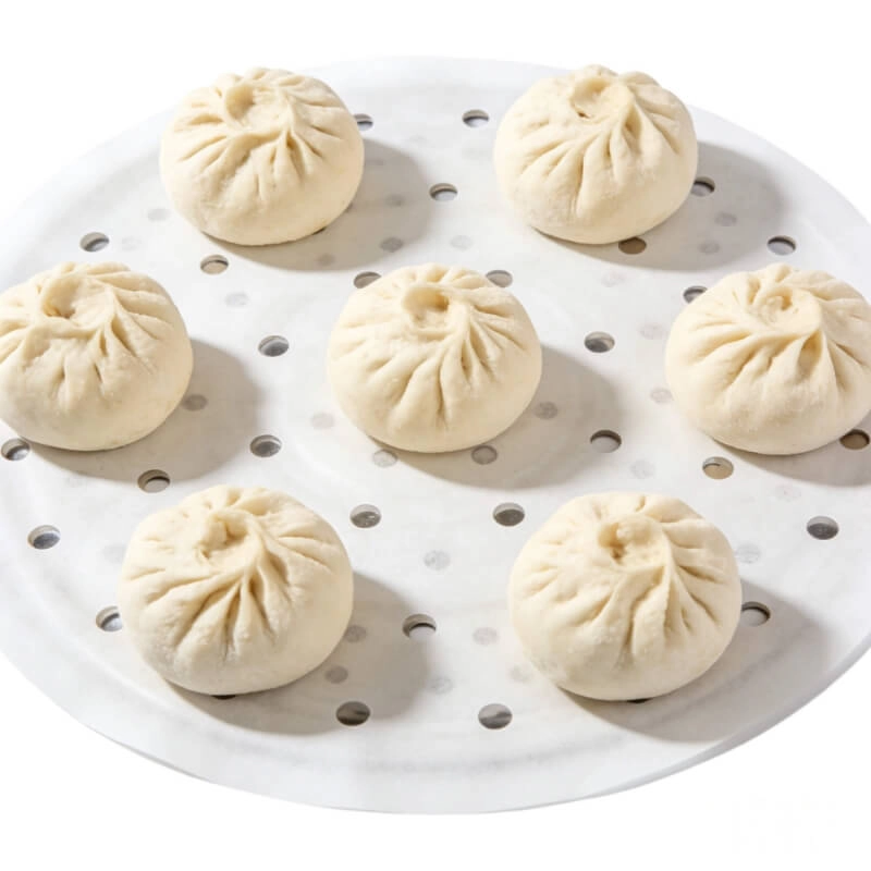 Also known as steamer liner paper or steaming non-stick paper, it is a food-grade functional release paper specifically designed for Chinese-style steamed foods. Made from 100% virgin wood pulp, it is produced through precision papermaking, double-sided food-grade silicone coating, high-temperature lamination, and precise cutting.